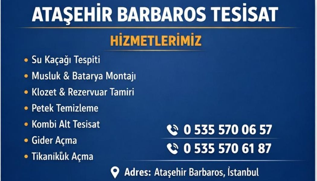 Ataşehir Barbaros Mahallesi’nde profesyonel tesisat hizmeti sunan firmamız; su kaçağı tespiti, tıkanıklık açma, petek temizleme ve acil tesisat müdahalelerinde hızlı ve garantili çözümler üretmektedir.